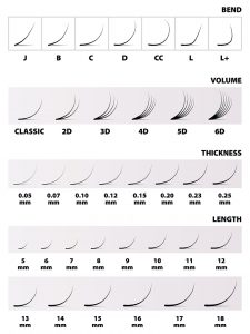 - 0,12 és 0,10 vastagságú műszempillával 1D-s szettet készíték, 0,10-es szempillából ritka esetben 2 D-t, ha a vendég saját pillái engedik
